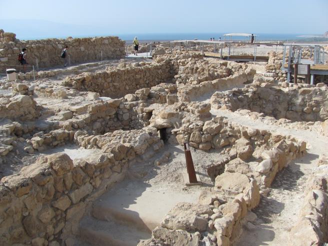 El origen de la comunidad esenia se remonta alrededor del año 170 a.C. cuando un grupo de judíos huyeron al desierto de Judea, a orillas del Mar Muerto, donde establecieron el primer asentamiento que posteriormente ampliaron con casas sencillas de piedra, una plaza, un comedor comunitario, depósitos para áridos y agua potable, así como una biblioteca con algunos textos sagrados que habían logrado sacar de Jerusalén.