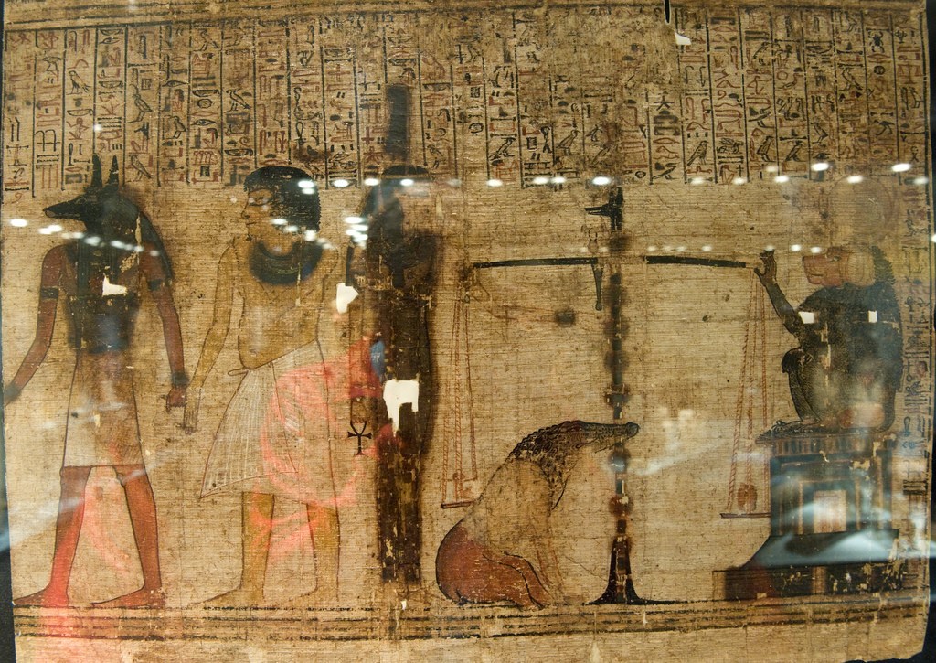 Detalle del Libro de los Muertos donde Anubis pesa las almas. El papiro mide 18 metros.