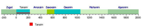 El período de los Tanaim también conocido como el período Mishnáico, es posterior al período de los Zugot («pares»), y anterior al período de los Amoraim.