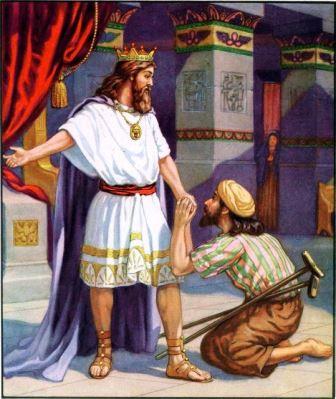 Al ser lisiado de ambos pies, Mefi-boset era incapaz de rendirle algún servicio significativo a David, lo único que podía hacer era recibir la dadivosidad del rey. El nombre mismo Mefi-boset significa «una cosa vergonzosa», y había vivido muchos años en Lodebar, que significa «la tierra desolada“ (lit.: «sin prados»).David trajo a este paria desvalido a comer en su mesa como su propio hijo, y en su gracia le concedió una magnífica herencia a la cual ya no tenía derecho legal.
