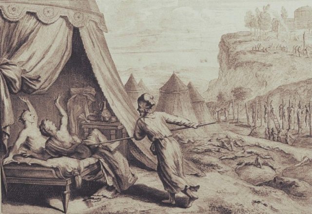 Números 25:7-9 – «…Y lo vio Pinjas hijo de Eleazar, hijo del sacerdote Aharón, y se levantó de en medio de la congregación, y tomó una lanza en su mano; (8) y fue tras el varón de Israel a la tienda, y los alanceó a ambos, al varón de Israel, y a la mujer por su vientre. Y cesó la mortandad de los hijos de Israel. (9) Y murieron de aquella mortandad veinticuatro mil…»