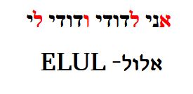La palabra «Elul» es similar a la raíz del verbo «búsqueda» en arameo . El Talmud escribe que la palabra hebrea «Elul – אֱלוּל» puede ser entendida como un acrónimo para la frase «Ani L’Dodi v’dodi Li» – «Yo soy de mi amado y mi amado es mío» (Cantares 6:3).