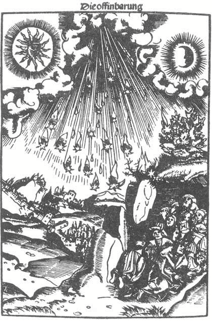 El gran día de la cólera de Dios según el Apocalipsis (cap. VI). Grabado en madera hecho por Cranach para el Nuevo Testamento traducido por Lutero (1522).