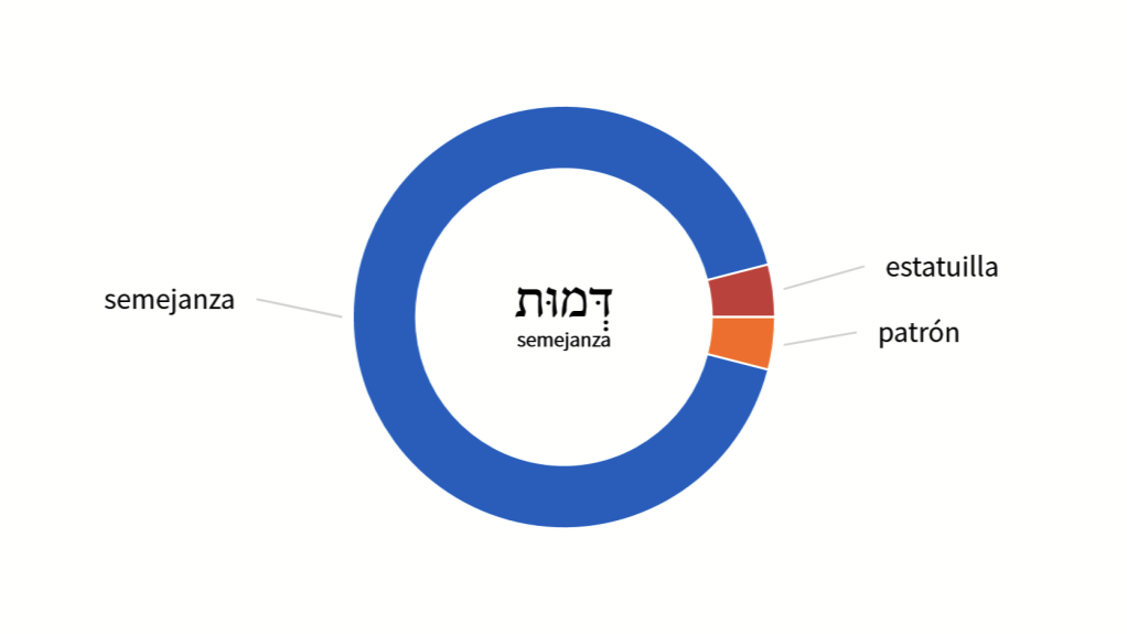 Investigaciones recientes han observado una debilidad lógica en la idea de que “semejanza” (דְּמוּת, demuth) requiera una “imagen” (צֶלֶם, tselem) para ser entendida en términos visuales. Como los términos no siempre se equiparan, no se puede decir que hace falta uno para comunicar el otro. También sugiere que sus significados no son completamente sinónimos.