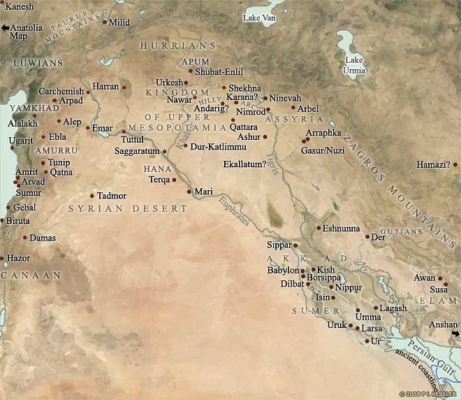 Mapa de Mesopotamia, 2000-1600 a.C.