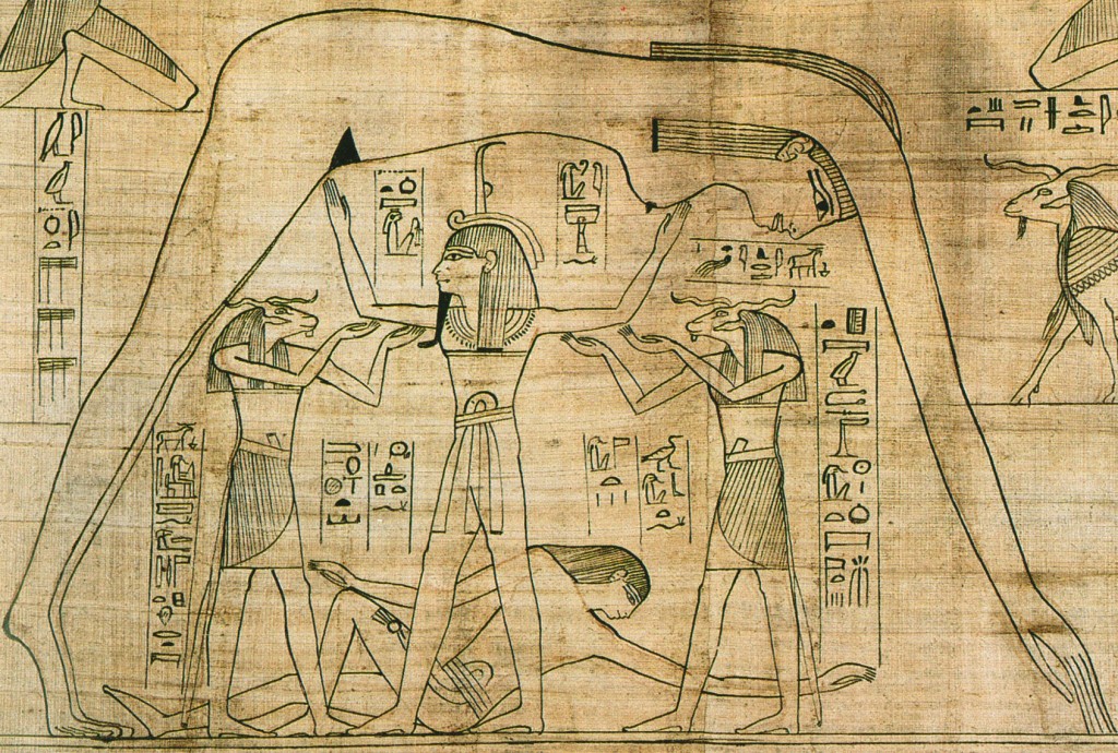 Para los egipcios, el elemento más importante de su esquema cosmológico era el sol (el dios Re). Creían que cada noche el sol viajaba hasta el inframundo para renacer cada mañana de las aguas de Nun, la fuente de la vida. El calor y la luz del sol eran en sí mismos fuente de la vida para las criaturas que vivían sobre la tierra.