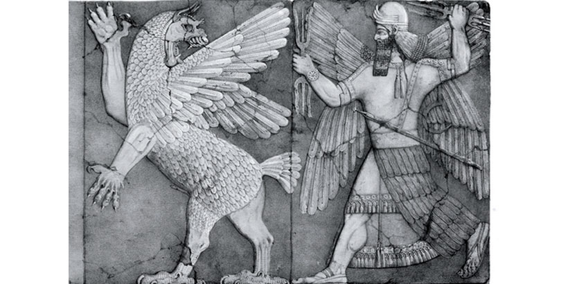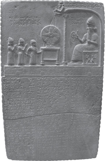 Placa de Shamash con su trono fundado sobre las aguas celestiales