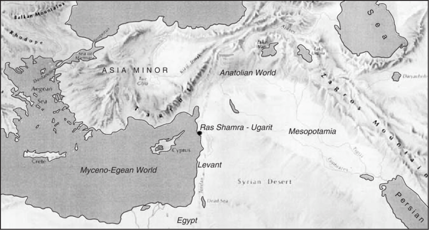 Nuestra fuente principal para la cosmología cananea es la colección de textos excavada en Ras Shamra, antigua Ugarit. Datan de aproximadamente el siglo XIV a.C. Entre ellos está el ciclo de textos de Baal, historias acerca del dios Baal, pero no hay una cosmogonía indiscutible. En estos textos al jefe del panteón, El, se le llama bny bnwt, “creador de la creación/criaturas”, y ’b ’dm, “padre de la humanidad”. Asera, su esposa, recibe el epíteto de qnyt ’lm, “creadora/progenitora de los dioses”. Estos epítetos sugieren que para los cananeos la creación se concebía en términos de procreación. Existe un texto ritual (KTU 1.23) que habla del nacimiento de los dioses Shahar y Shalim como resultado de la actividad sexual de El.