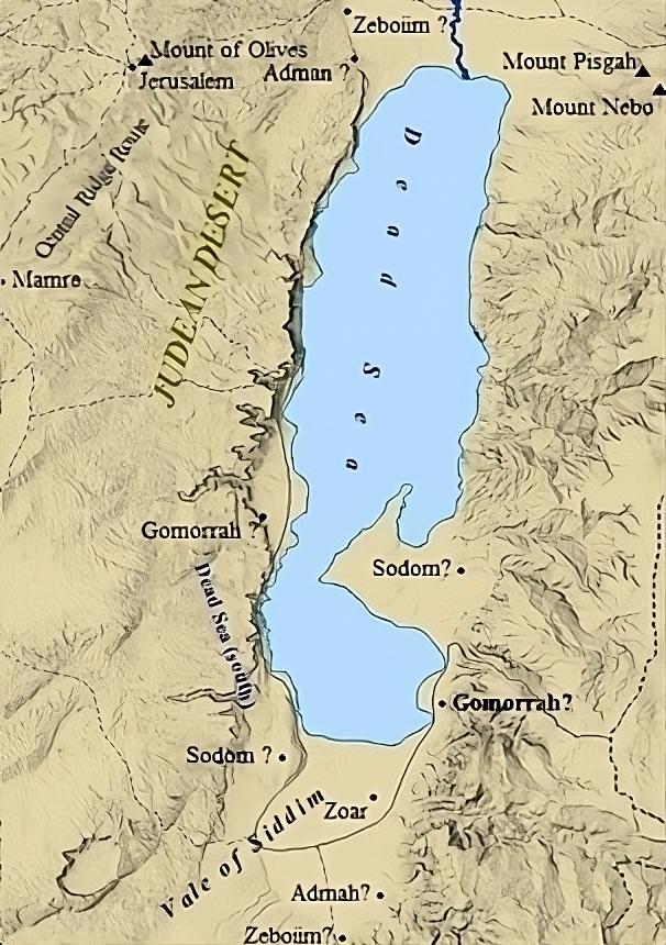 El componente direccional es fundamental para nuestro debate. Desde Betel, Lot podía ver que «toda la llanura del Jordán estaba bien regada… como el jardín de Yahveh, como la tierra de Egipto, hacia Zoar «2 (Gn 13:10). Al elegir «toda la llanura del Jordán», viajó hacia el este (מִקֶּדֶם, miqqedem) para llegar allí (13:11). Esto sugiere que al menos tres de las cinco ciudades de la llanura, nombradas en este pasaje como Sodoma, Gomorra y Zoar, estaban al este de Betel, es decir, en el valle del Jordán, al norte del Mar de la Sal (Mar Muerto). El resultado era que Abram vivía en la tierra de Canaán, y Lot vivía en las ciudades de la llanura y acampaba cerca de Sodoma3. En este punto ya se señalaba a Sodoma como malvada.