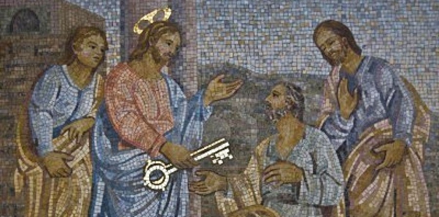 Teológicamente, la Iglesia católica romana basa su postura en Mateo 16:18, afirmando que Pedro es la «roca» sobre la que se funda la Iglesia, lo que otorga a sus sucesores el pleno poder de atar y desatar. La primera aplicación cierta de este texto a la Iglesia romana fue realizada por el papa Esteban I (254-57) en una discusión con el obispo Cipriano de Cartago sobre el bautismo de herejes. Esta interpretación prevaleció en Roma y ha sido el pilar de los documentos y reivindicaciones papales hasta nuestros días. Pero otras interpretaciones persistieron en otros lugares. El punto de vista protestante más común es también el que se encuentra en el primer comentario existente sobre este texto (de Orígenes), a saber, que la «roca» sobre la que se asienta la Iglesia es la confesión de fe de Pedro. Los que se concentraron en el «poder de atar y desatar» en ese texto generalmente lo vieron conferido a todo el episcopado del que Pedro no era más que un símbolo o portavoz (esto en Cipriano, Agustín y gran parte de la tradición ortodoxa oriental).