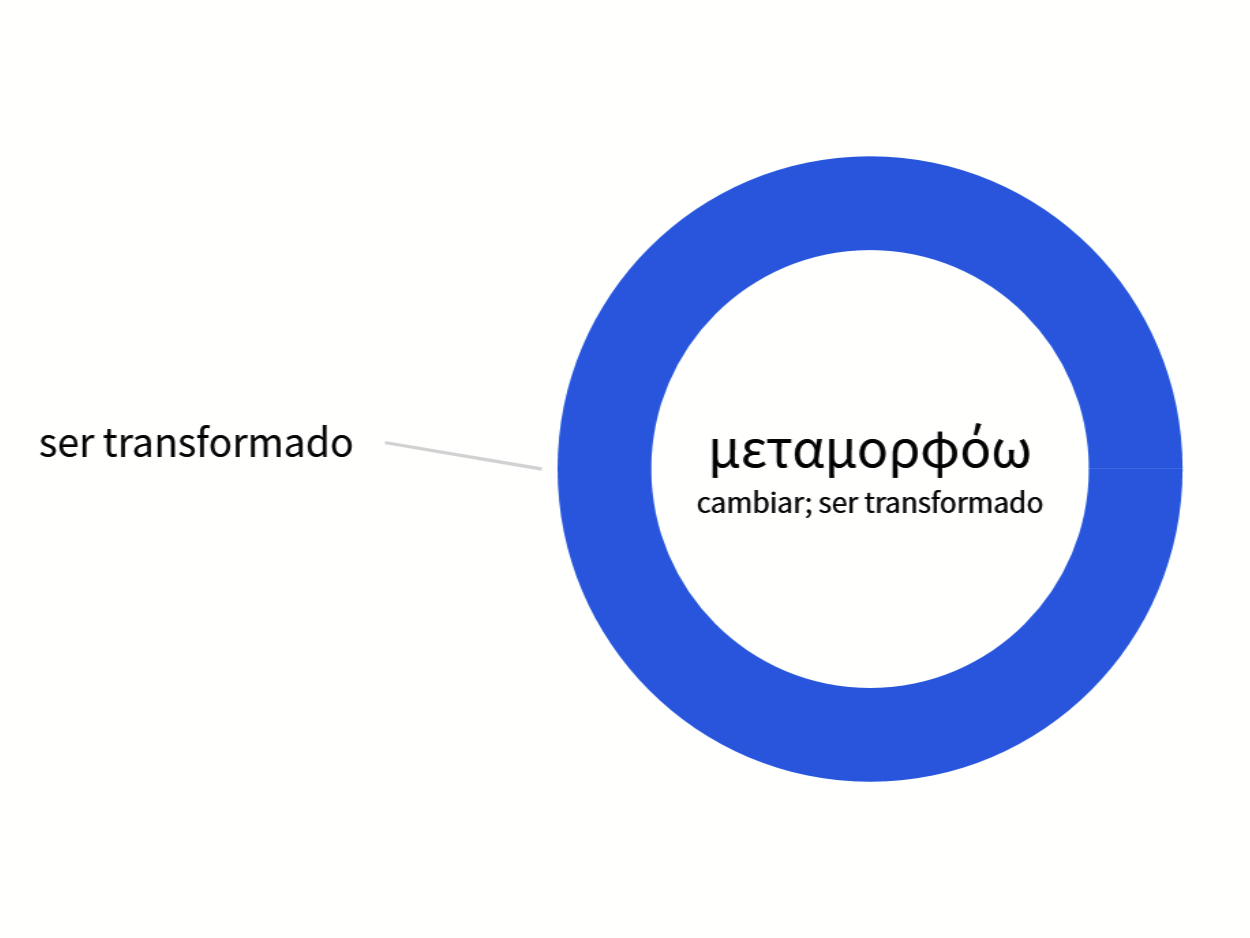 El título inglés «transfiguration» procede de la KJV, que tradujo la forma pasiva aoristo del verbo griego μεταμορφόω (metamorphoō) como «se transfiguró» (Mt 17:2; Mc 9:2). La elección de esta palabra, en contraposición a «transformación» o simplemente «cambió», estuvo influida por el latín tranfiguratus de la Vulgata. Las otras dos ocurrencias neotestamentarias de μεταμορφόω (metamorphoō) se utilizan en relación con el desarrollo del carácter cristiano, a saber, la renovación de la mente en conformidad con la gloria de Cristo (Rom 12:2; 2 Cor 3:18).