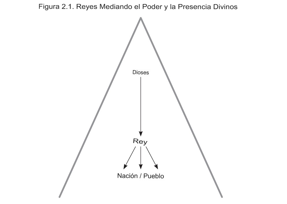 El rey en el antiguo Próximo Oriente era, por supuesto, también el gobernante político de su nación. Era el legislador y el mecenas de las artes y la civilización. El rey era el principal organizador de las ciudades, se ocupaba de los grandes proyectos de construcción cívica y religiosa de su nación y supervisaba el mantenimiento del sistema de riego (del que dependía la agricultura) como parte de su gobierno. Los antiguos textos mesopotámicos, en particular, son muy explícitos en cuanto a que el rey debía supervisar el sistema de riego de canales, proporcionando así agua para la agricultura, de la que dependía la sociedad. El rey era el jardinero por excelencia. A medida que el rey ejercía su poder real -organizando y administrando una cultura y una civilización complejas (que abarcaban desde la agricultura hasta el derecho y las artes)- funcionaba como sacerdote, mediando y manifestando la presencia de los dioses en la tierra (véase la figura 2.1).