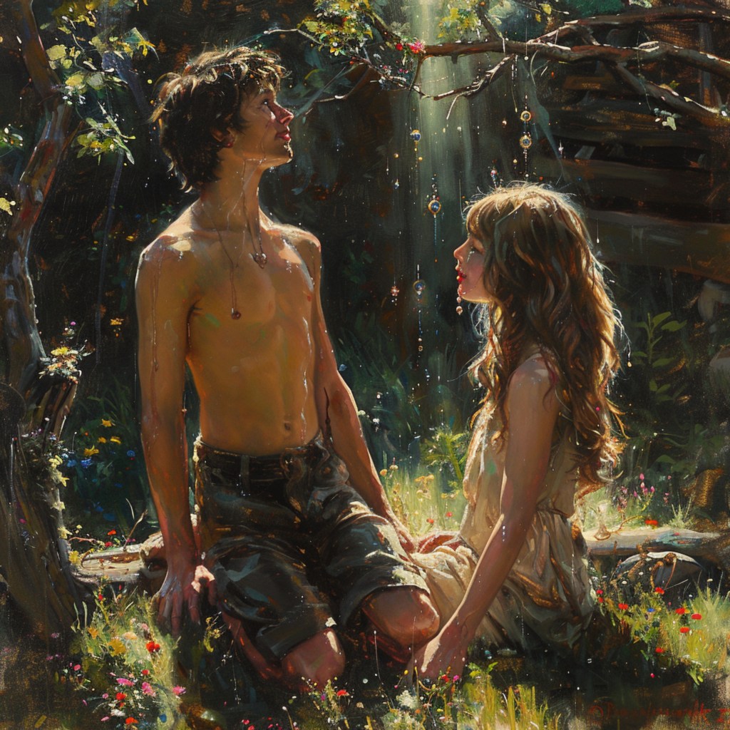 Así que Dios se inclina, toca al hombre y le dice: «Hijo, puedes despertar ahora. Te tengo una criatura más que nombrar. Estoy muy interesado en ver tu reacción a esta». Y como el padre de la novia, Dios «la trajo al hombre», según el versículo 22. Y para el hombre, es un caso de amor a primera vista. En el versículo 23, se regocija en la mujer con las primeras palabras humanas registradas, y son poesía, motivadas por el amor:
