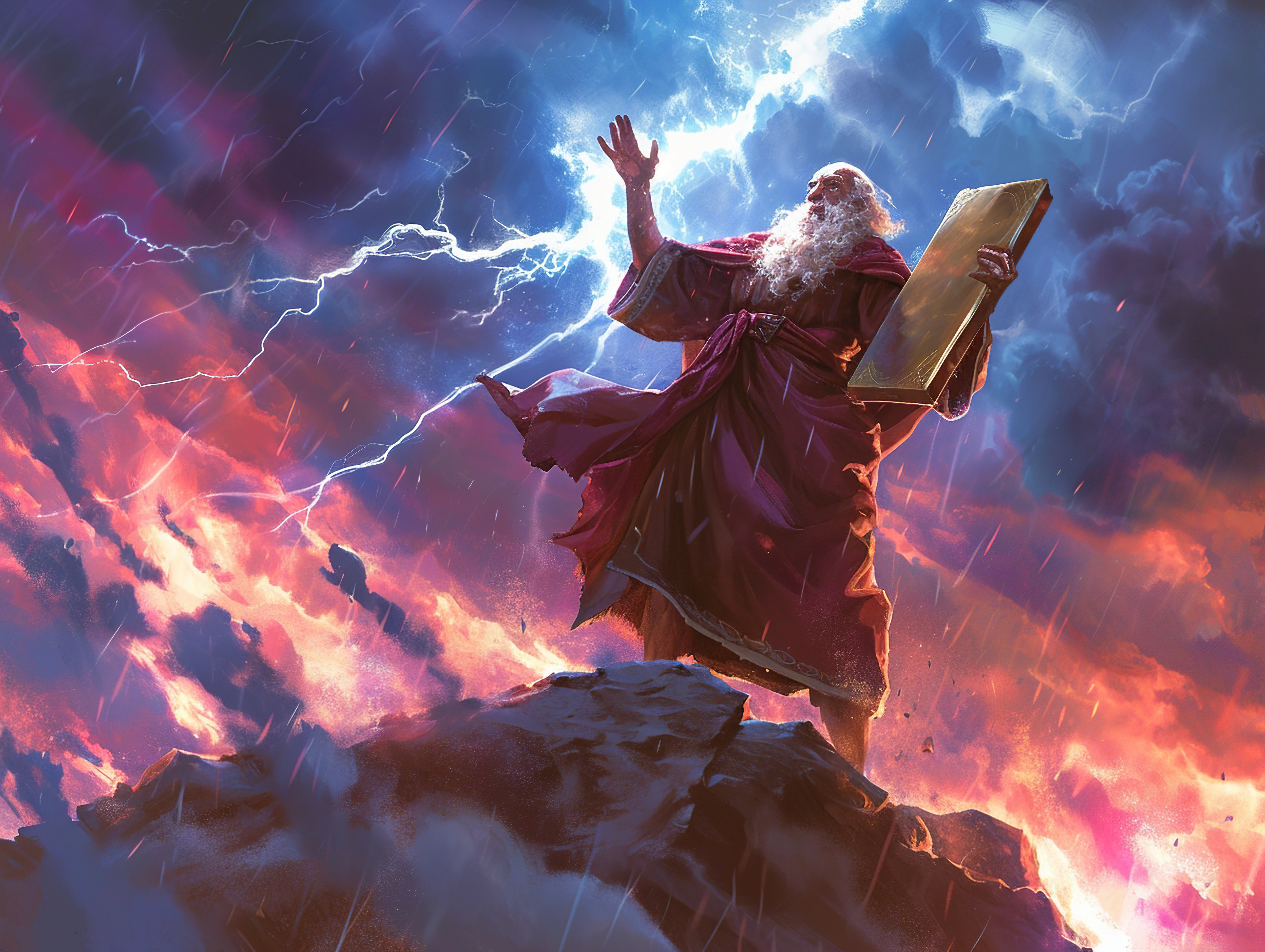 «Moisés subió a la montaña y la nube cubrió la montaña. La gloria de Adonai reposó sobre el monte Sinaí, y la nube lo cubrió durante seis días. Y llamó a Moisés —vayikra el-Moshe— al séptimo día desde en medio de la nube»