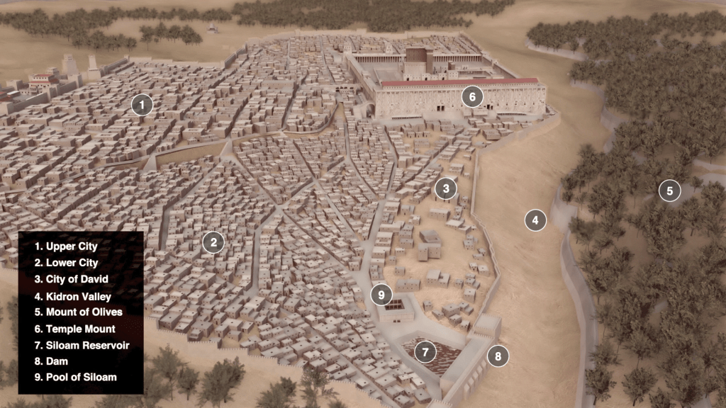 Durante el período romano temprano, esta área servía a enormes cantidades de peregrinos judíos desde Jerusalén, Judea, Galilea y la diáspora, que adoraban en el templo herodiano. Muchos de los detalles relacionados con las enormes estructuras dentro y alrededor del monte del templo que han sido abordadas ofrecen información crucial de trasfondo para entender Jerusalén tal como fue durante la época del Evangelio.