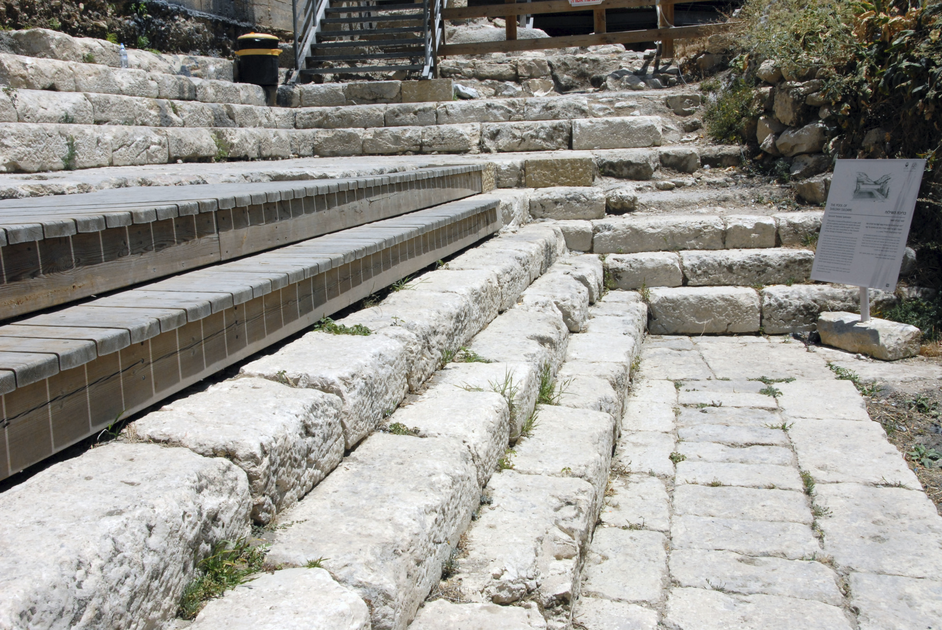 - La extensión completa de esta calle alta, pues ha sido excavada solo hasta el área de la puerta Mugrabí (esto es, la rampa temporal conduciendo al monte del templo). La calle alta también continúa a lo largo de la cara sur del monte del templo (ver abajo). ↩︎