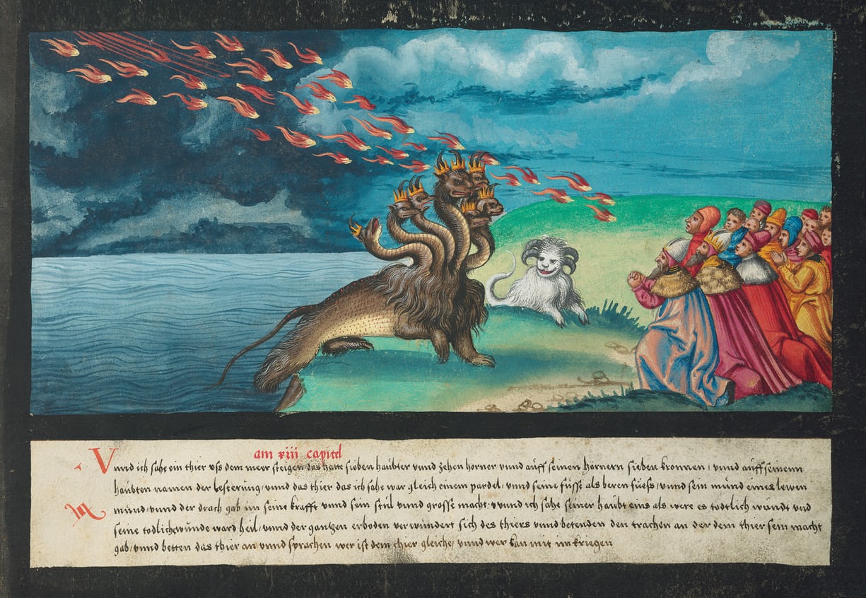 La bestia del mar en Ap. 13 (cf. 11:7; 14:9-10; 16:2, 10, 13; 17:3-17; 19:19-20; 20:10) comparte características de las cuatro bestias de Dan. 7. La bestia surge, recibe poder y lo ejerce de forma destructiva. Esta bestia del Apocalipsis parece corresponder tanto a los imperios mundiales de Dan. 7 como al futuro anticristo que describe Dan. 11:36-37.