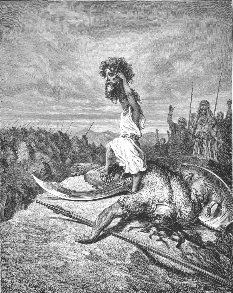 La historia de David y Goliat es una historia de matanza de dragones (cf. Verrett, 46-66). Goliat aterroriza al pueblo de Dios como una serpiente gigante que «llevaba una armadura de escamas» (1 Sam. 17:5). La palabra hebrea traducida como «escama» (qaśqeśet) aparece otras siete veces en el AT, y en todas ellas se refiere a las escamas de los peces, incluido el dragón del mar (Lv. 11:9, 10, 12; Dt. 14:9, 10; Ez. 29:4 [2×]).