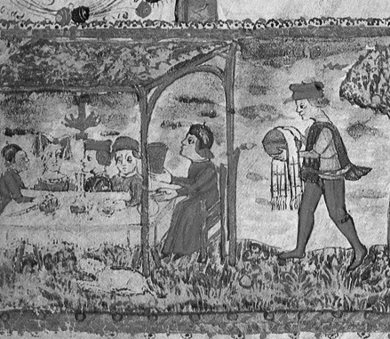 Si se cubría [la sucá] según la ley y se decoraba con alfombras y tapices hechos a mano, y se colgaban en ella frutos secos, almendras, melocotones, granadas y racimos de uvas, vides, [decantadores de] aceites y harina fina, y coronas de espigas de maíz, estaba prohibido hacer uso de ellos [para comer, por ejemplo, cualquiera de los frutos] hasta que finalice el último día de la fiesta.18
