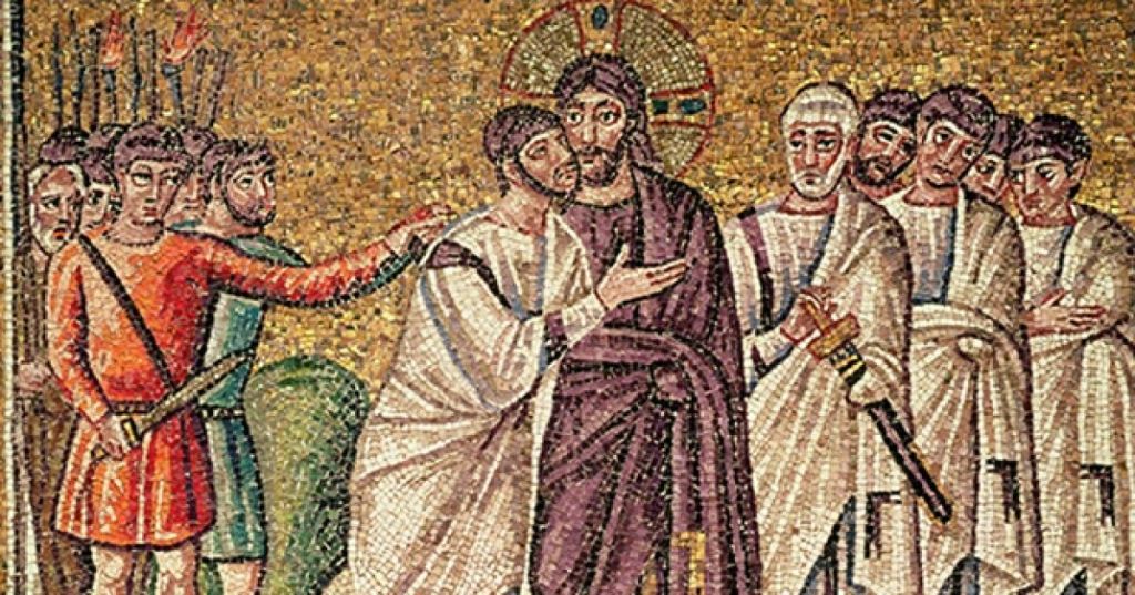 En los Evangelios sinópticos, la traición de Judas se sella con un beso: